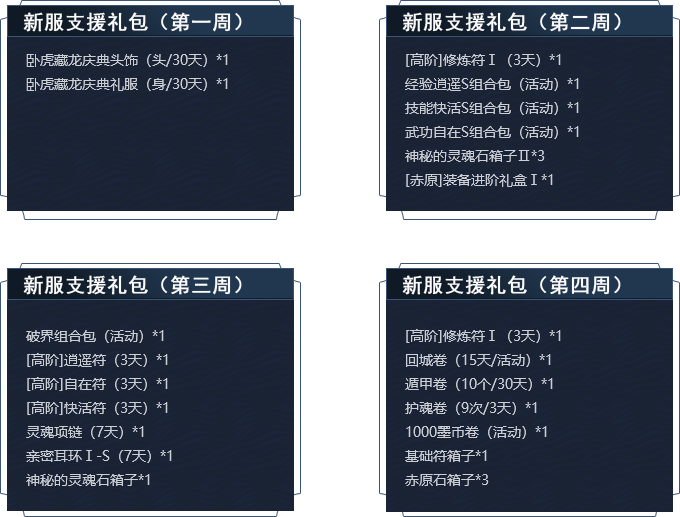 新服支援礼包(第1周),新服支援礼包(第2周),新服支援礼包(第3周),