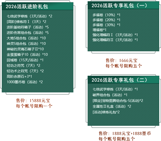 活动内容:商城限时特卖上架活跃玩家专属限购礼包