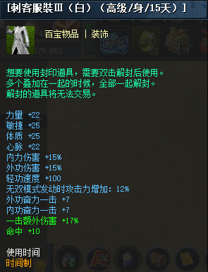 星运道具:刺客服裝Ⅲ(白)(极品/身/30天)袋子